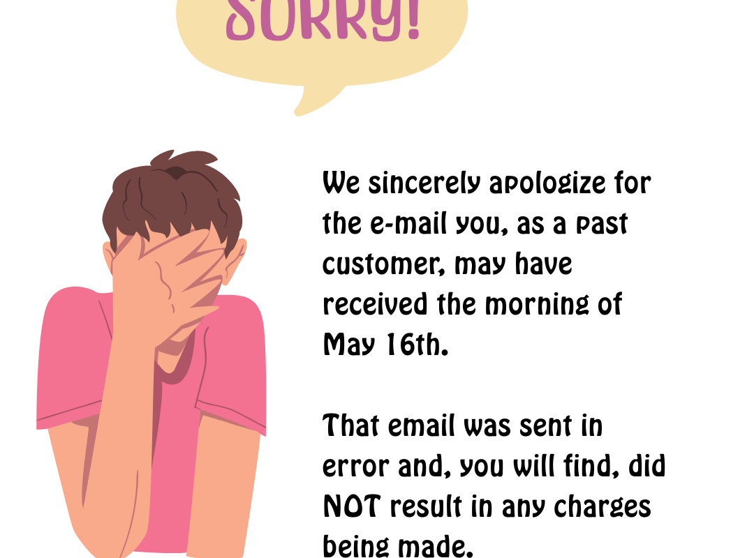 We sincerely apologize for the e-mail you, as a past customer, may have received the morning of May 16th.
