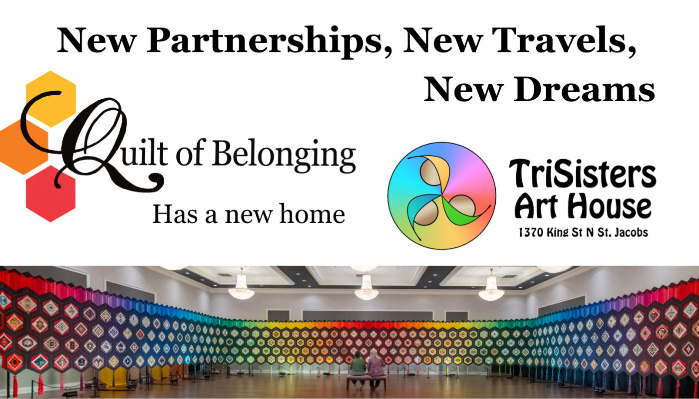 In the past five years, and in particular after Esther’s passing in 2022, the Board of Directors of the Quit of Belonging had been considering different options that would ensure the continuing mission of the Quilt; to travel the world telling the stories of Canadians of all types, from the First Nations to the new citizens of today, from coast to coast to coast who all call this wonderful country home. Now they are pleased to announce this new partnership with the Three Sisters Cultural Centre of St. Jacobs Ontario.